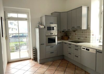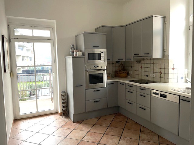 Von der Küche gelangt man auf den hofseitig gelegenen Balkon.