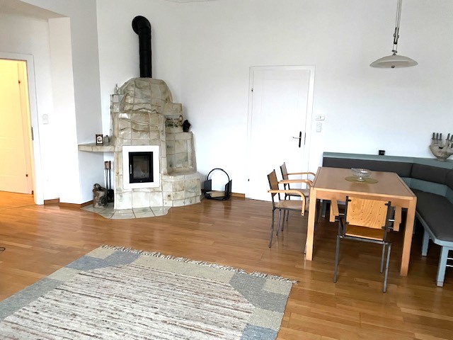 Geheizt wird mit Fernwärme, zusätzlich verfügt die Wohnung noch über einen neu sanierten Kachelofen.